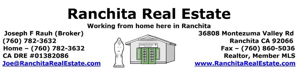 Ranchita Real Estate is a small independent real estate office which services the Montezuma Valley including Ranchita and San Felipe. On occasion, I will do work outside of the valley for friends and neighbors. I provide a unique service to my neighbors, and buyers and sellers in the region between Borrego Springs and Warner Springs..